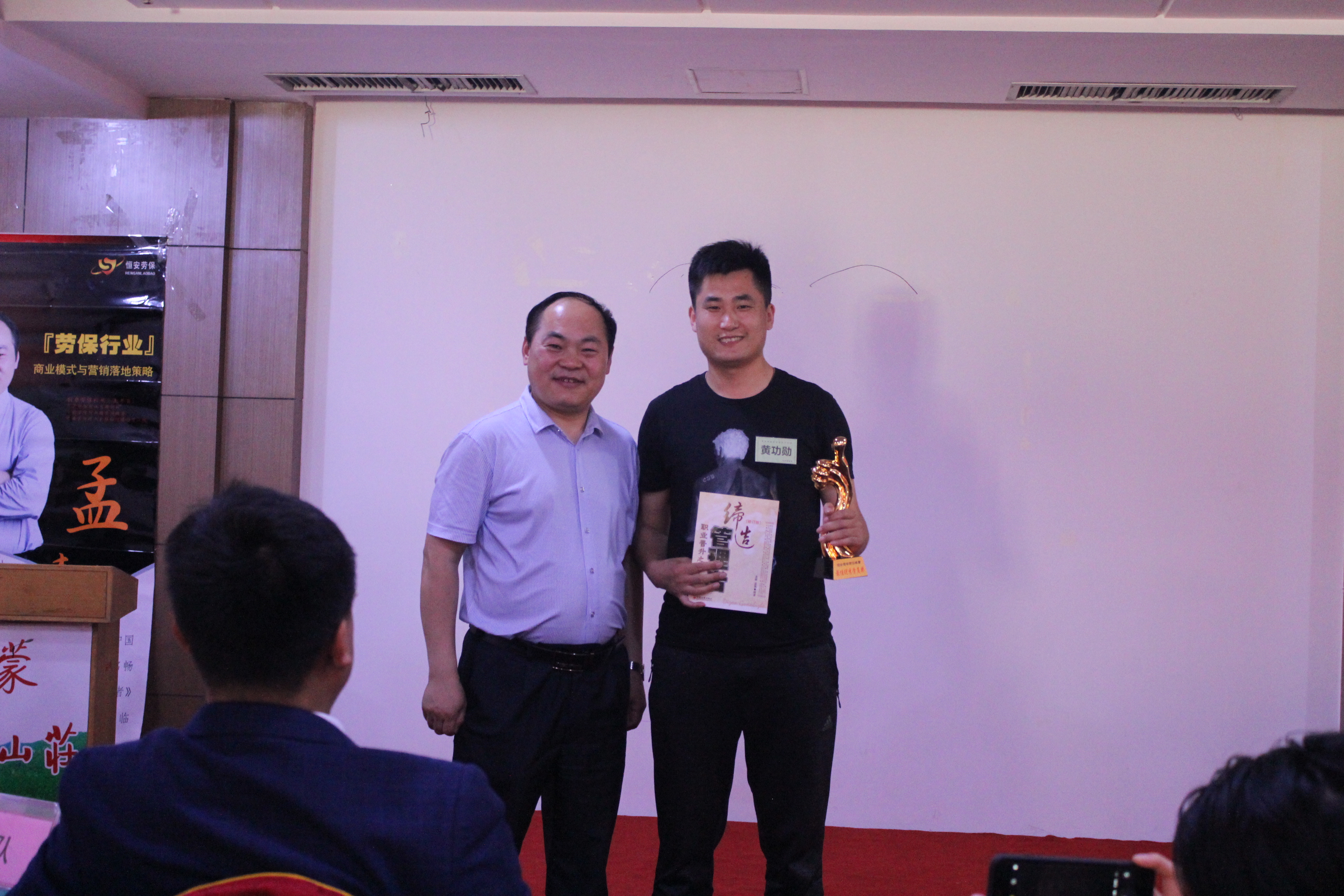 孟老師為優(yōu)秀學(xué)員、最佳隊長(cháng)及優(yōu)勝隊辦法獎品及證書(shū)