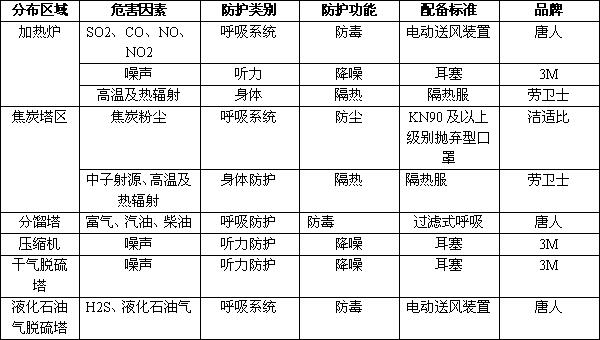 職業(yè)危害分布及配備標準: