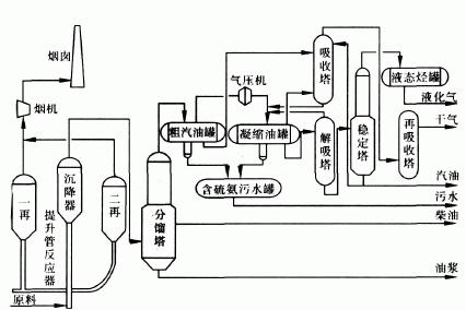 反應再生系統:提升管反應器、再生器、催化劑罐、主風(fēng)機、煙氣輪機、余熱鍋爐